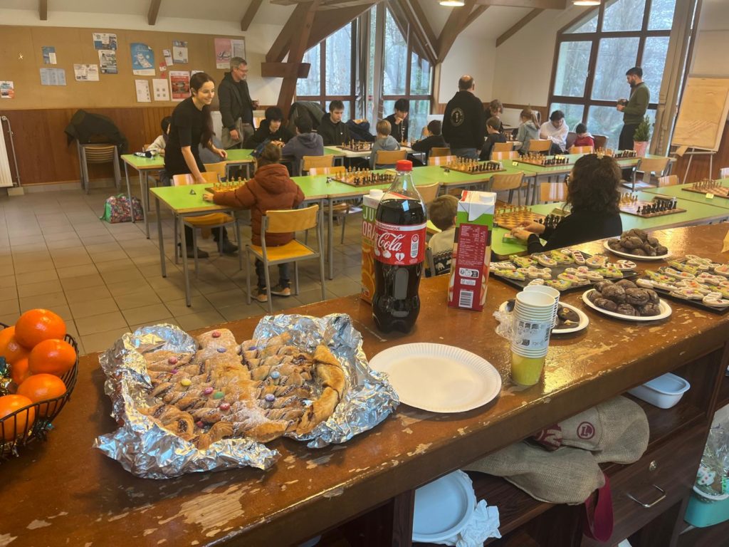 Grâce à Fanny – notre pâtissière hors pair – à des coachs toujours disponibles et bienveillants, et bien sûr à nos jeunes joueurs fair-play, la matinée a été une vraie réussite. Des enfants issus de différents groupes se sont affrontés lors de cinq rondes de parties rapides. Les pendules tournaient, les pièces se déplaçaient parfois un peu trop vite, quelques coups illégaux se réglaient dans la bonne humeur… souvent accompagnés de papillotes et de biscuits au gingembre, très appréciés par tous.