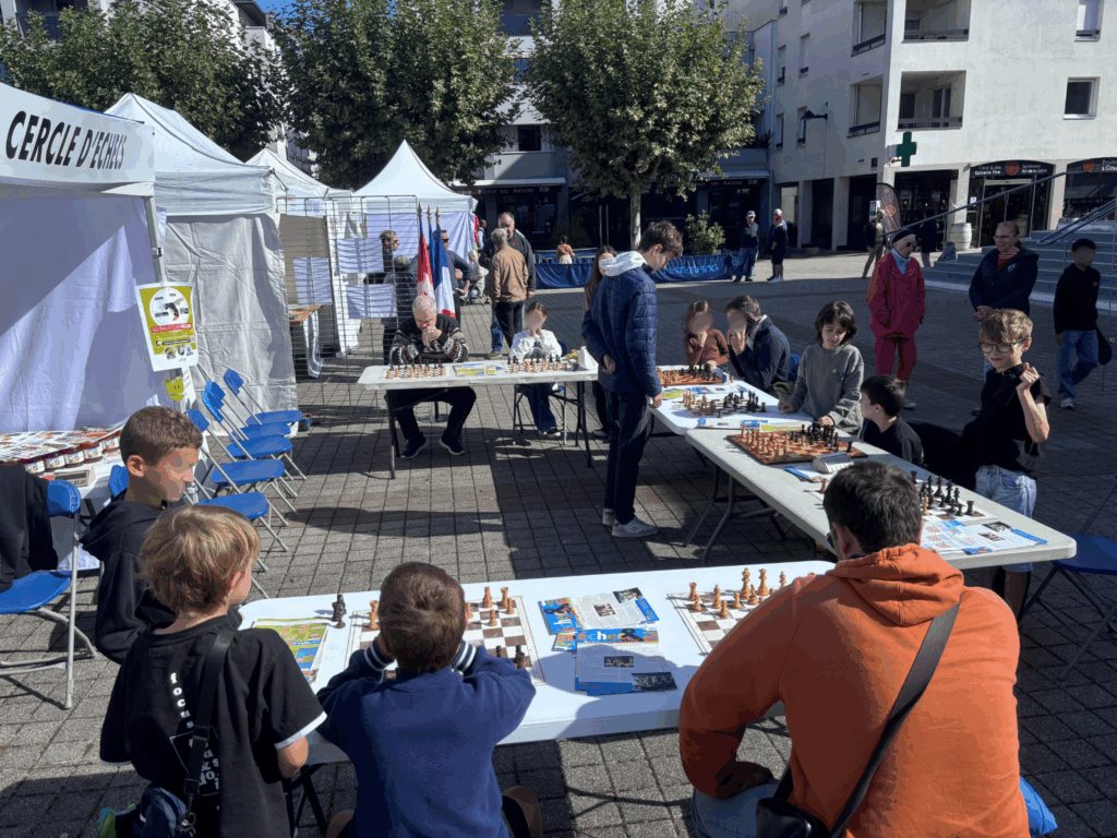 À cette occasion, Dimitri a réussi à allier ses deux passions, les échecs et les abeilles, en proposant à la fois des parties ouvertes au public et une dégustation de miel, très appréciée des visiteurs. Un grand merci à lui pour son engagement et son énergie au service du club !