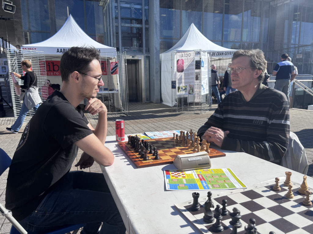 Nos échiquiers ont rencontré un grand succès et attiré de nombreux curieux tout au long de la fête. En fin de journée, Dimitri a invité chaleureusement les intéressés à rejoindre directement le club afin de poursuivre leur découverte des échecs dans un cadre idéal.