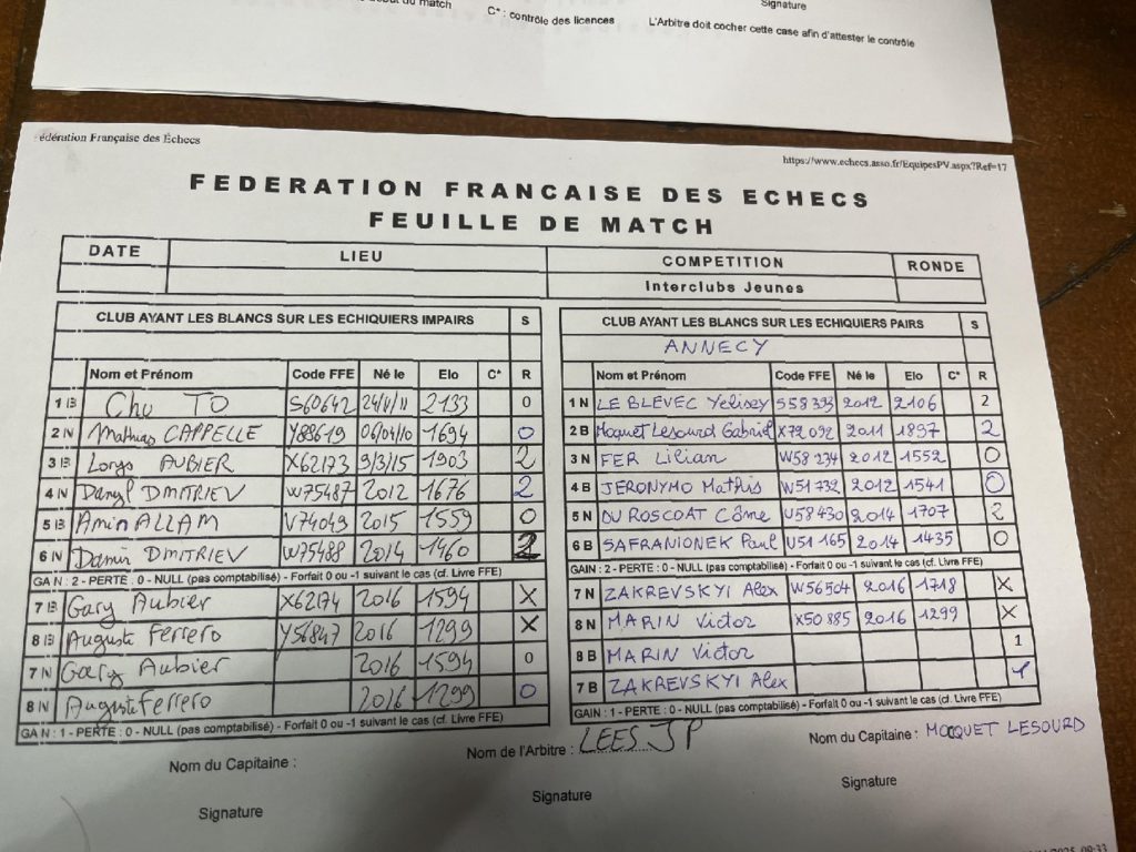 - l’échiquier 8, où notre petit Victor jouait contre Gary Aubier (1594), un adversaire expérimenté qu’il connaissait bien.
